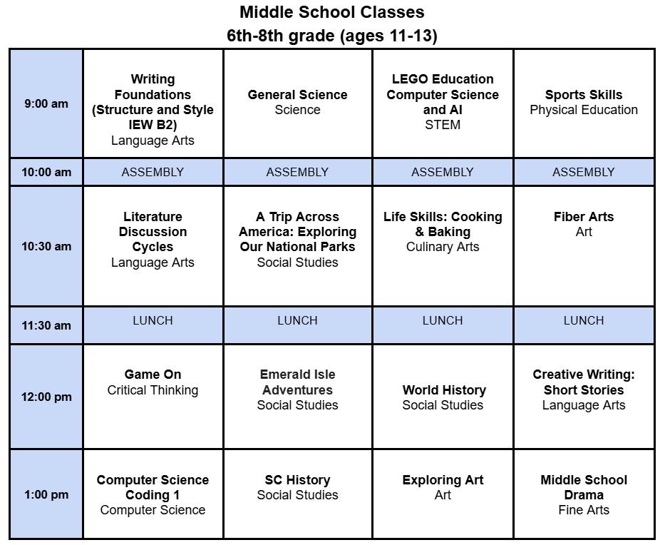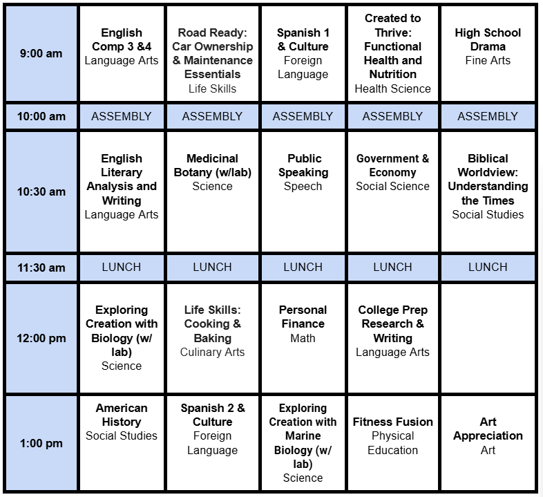 HIGH SCHOOL CLASSES (Ages 13 and up)